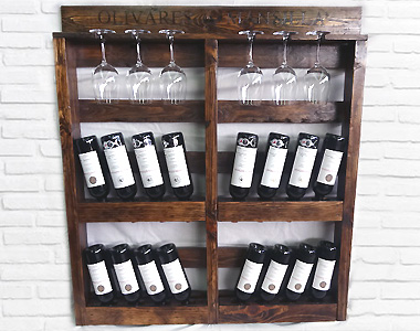 Botellero rústico y decorativo para 16 botellas y 6 copas, diseño exclusivo y acabado expectacular, no podrá faltar en su bodega, comedor o salón. Se puede servir con distintos acabados y letras grabadas a gusto del cliente.